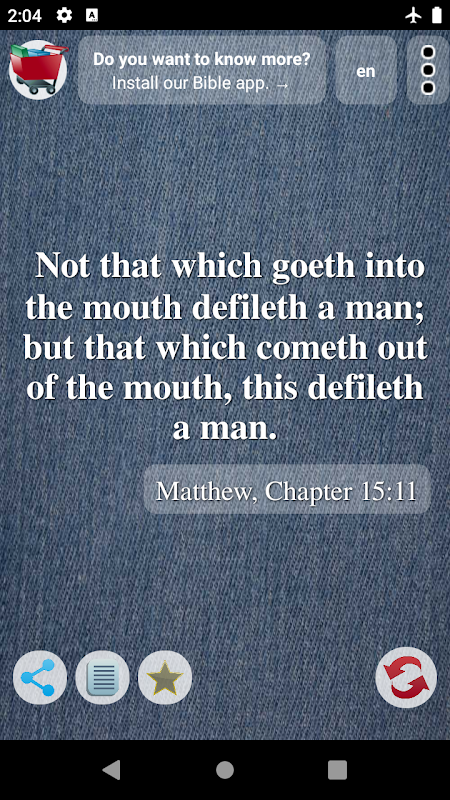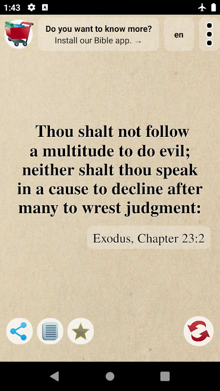 Start reading Bible with our app! Bible verses includes the best bible quotes in more than 40 languages. Read verses, share them among the friends, enjoy the power of Bible knowledge. The application is free and does not require internet connection.