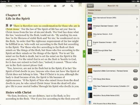 - The split-screen view allows you to open two books at once to compare Bible translations, view your study notes while you read, or follow along with a commentary while you study Scripture.