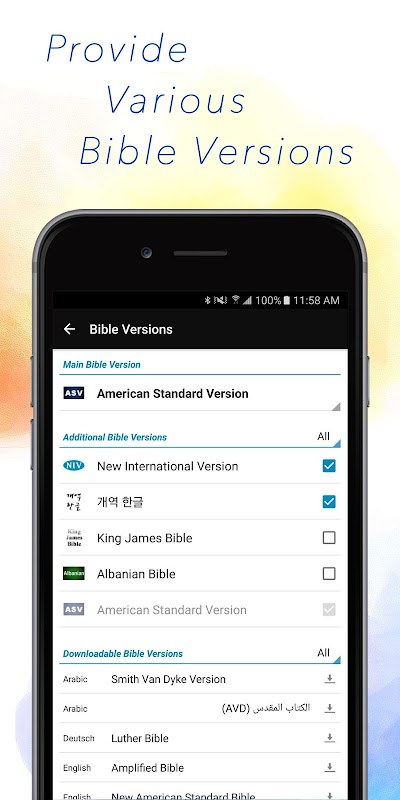 - Personalize your Bible with fonts, highlight colors.