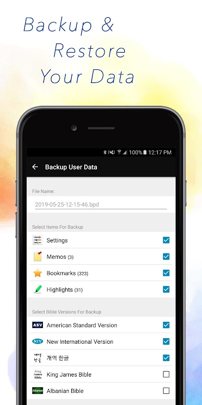 - Backup and restore your preferences, Highlights, Bookmarks and Memos.