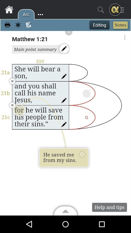 Biblearc is a cloud-based application for deep study of the scriptures. In our Bible study toolbox you will find an approachable and powerful integration of cross-references, study notes and the most advanced original language search available online. Biblearc’s speciality is graphical Bible study methods, giving you the world’s smoothest experience for Arcing, Bracketing, Phrasing and Sentence Diagramming. Access your work from anywhere, as it is saved in the cloud. We offer online courses for all levels, from the beginner who has never heard of these methods and simply wants to learn to study the Word deeper, to the professor and pastor already using them.