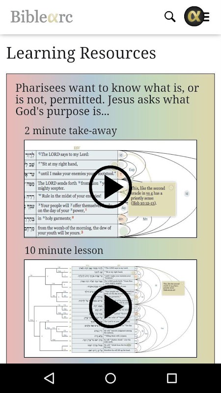 ✓ Courses: take an online course and learn how to dig deeper into Scripture using one of Biblearc's graphical methods. Classes for beginners through advanced, with options for personal feedback and help from the instructor, and group discussions with other students.