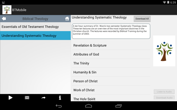 This version accesses over 1,000 hours of instruction of audio lectures (105 classes and counting). They cover a wide range of topics, from new believer, lay and elder training, to seminary-level classes.
