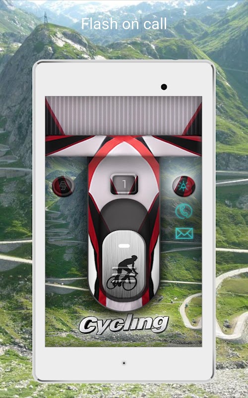 We adore cycling and bikes and made the design of the app with a special style, and this is also convenient for steering. Set the device with a special mount directly on the handlebar and turn on the lighting of the flashlight with the help of a large convenient button.