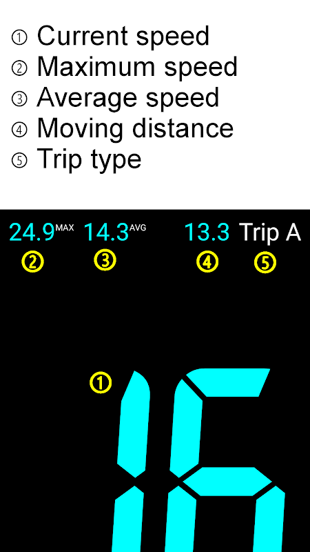 ✓ Provides a simple view mode that displays only the current speed