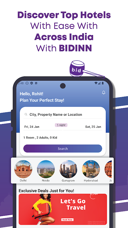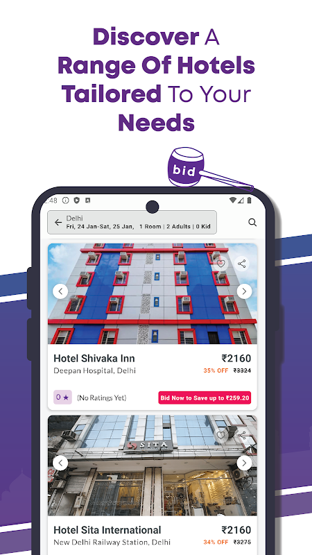 Bidinn lets you to book hotel at your own price with "Bid now" feature.