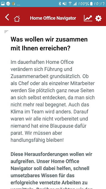Der Home Office Navigator greift diese Herausforderungen auf und bietet Ihnen schnell umsetzbares Wissen und Praxistipps für erfolgreiches vernetztes Arbeiten."