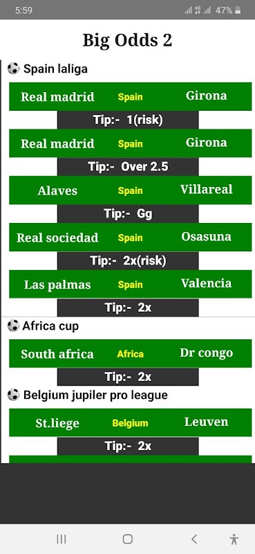 Daily football prediction app for more than 15 matches .you can choose odds and even lets you select random odds try it.