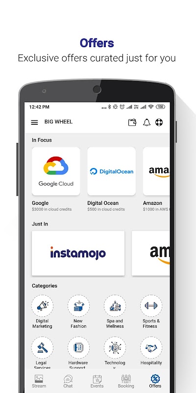 Big Wheel app helps members share their personal experiences, collaborate with each other, book meeting rooms conveniently and avail member only discounts.