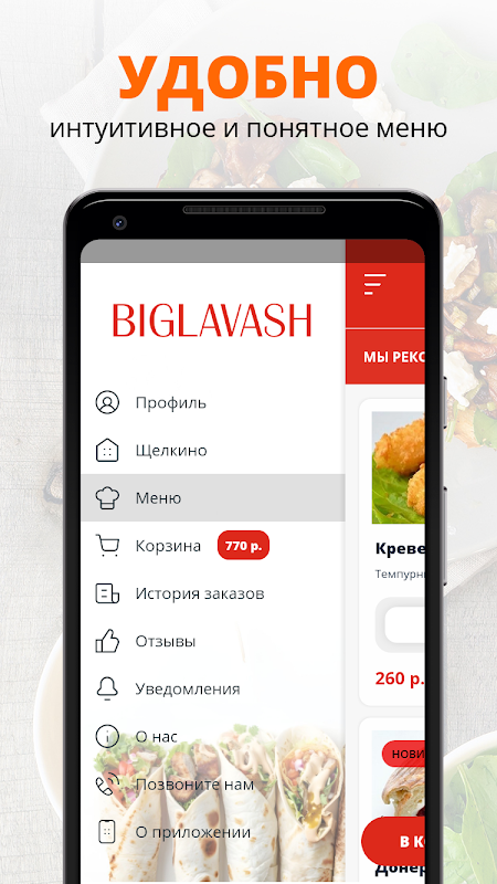 The BIGLAVASH app is a convenient way to order food to your home or office! We prepare our dishes from high-quality fresh ingredients and deliver food quickly and carefully.