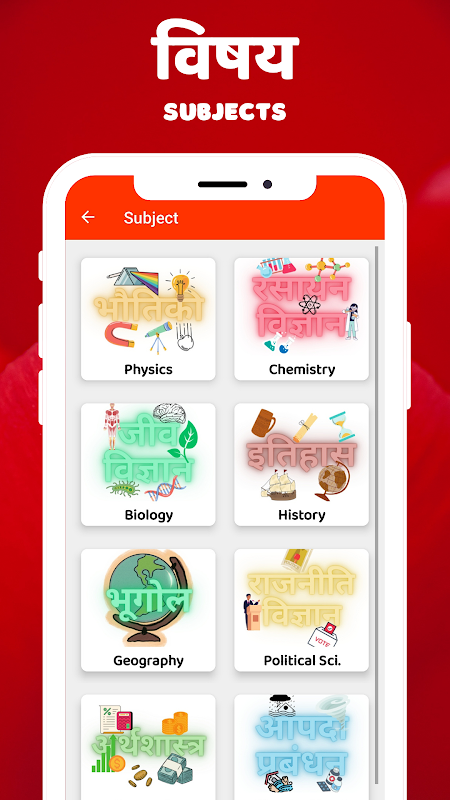 Very easy to use interface, just select an subject, and after that you will get all chapters of selected subject and again click on chapter which you want to learn.