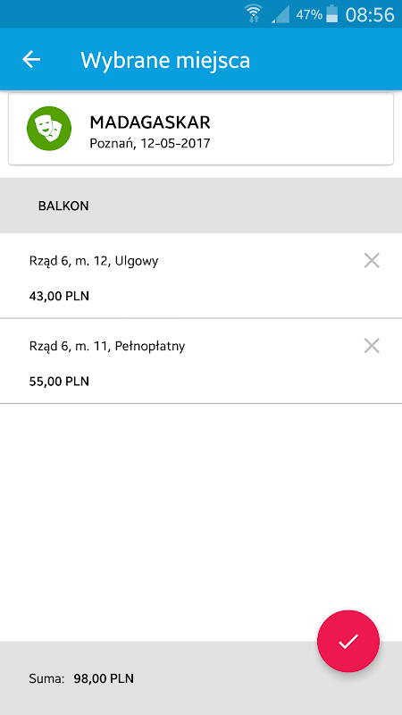 - Payment for tickets by bank transfer, credit card or virtual purses BLIK (payments are made directly in the application), immediately after payment application appears QR code ticket purchased, which must be use at the entrance to the event,