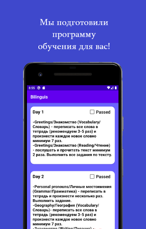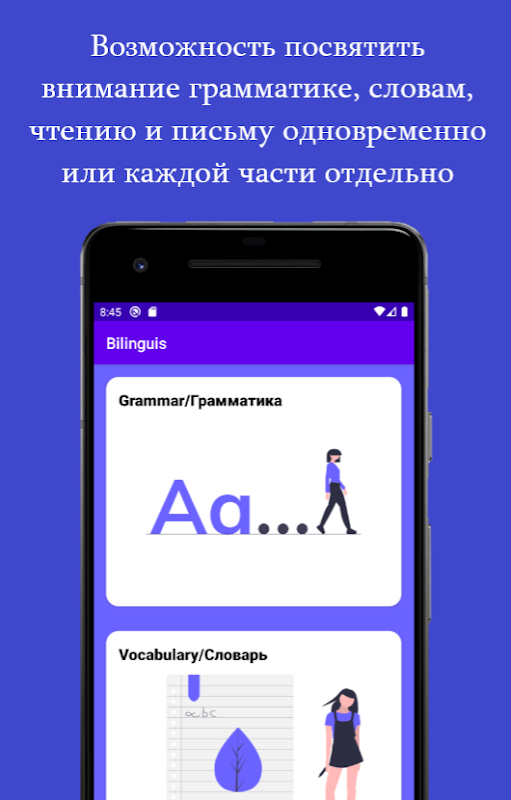Bilinguis - это совершенно бесплатный способ изучения английского языка. Никаких покупок совершать не нужно! Программа изучения уже готова и ждет только тебя! Все что вам нужно - это телефон и доступ к интернету. В программу обучения входят: грамматика, словарь, чтение и писание.