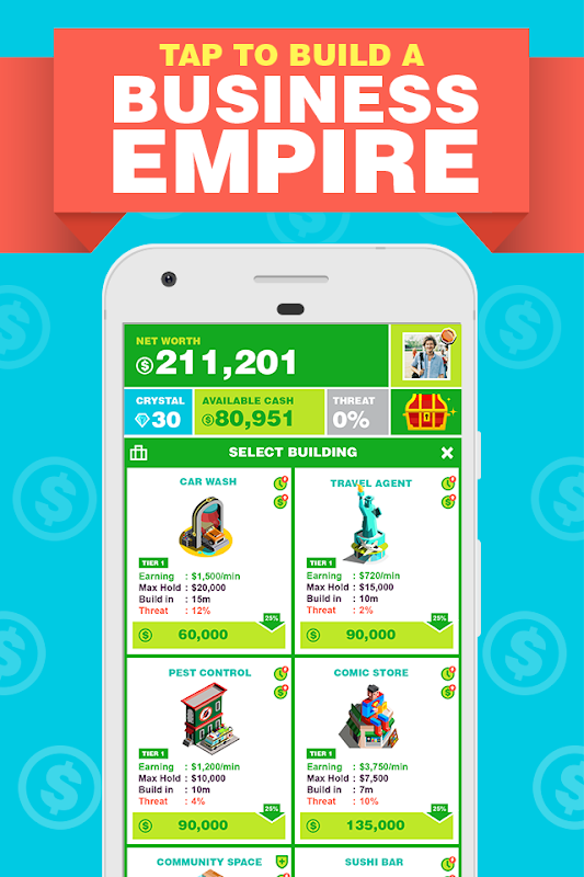 - Build a business empire and buy various buildings, from Pet Shops to Weapon Factories, build whatever businesses you want!