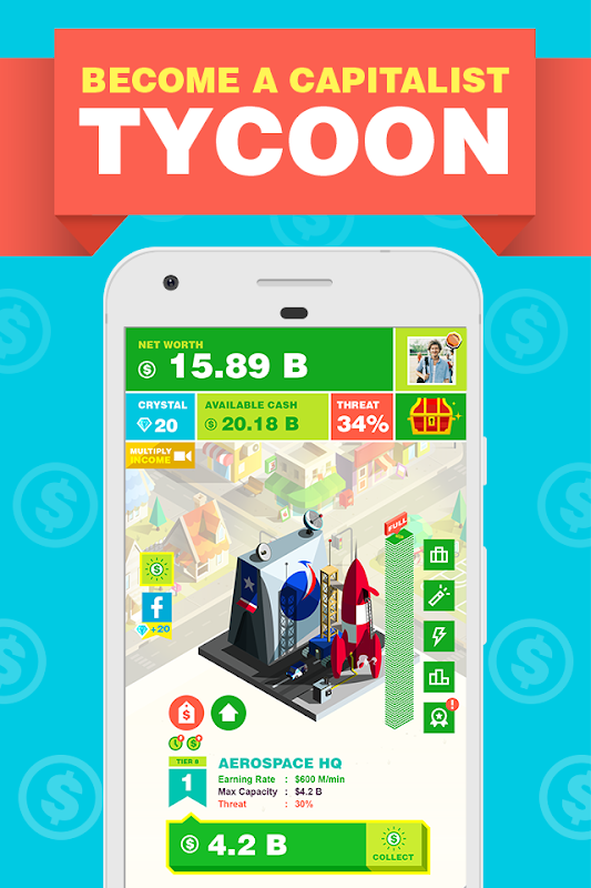 BILLIONAIRE is the quickest way to make sweet, virtual cash! Start your business adventure by building one business at a time before you go ahead to expand your business empire, become stinking rich, and beat the world's wealthiest investors in this epic tap game!