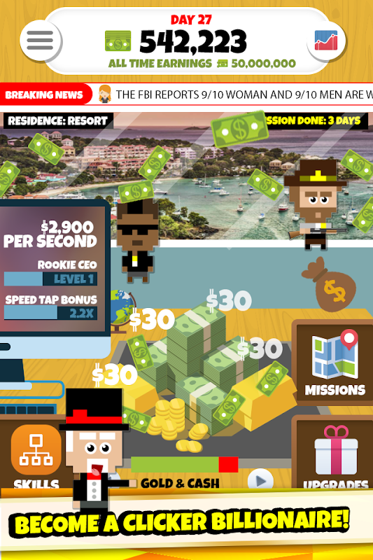 - Click fast and upgrade often: Click to earn money and then hire staff, consultants and buy equipment! Your billionaire business empire day-dream is just a tap away! The ultimate billionaire clicker experience!
