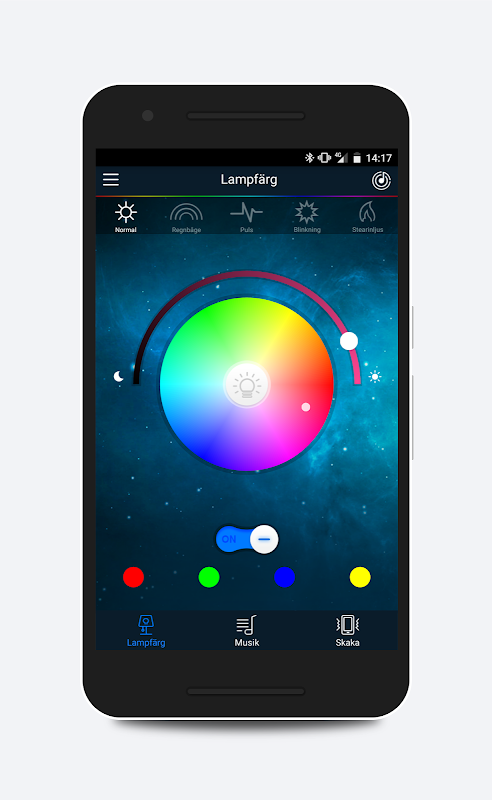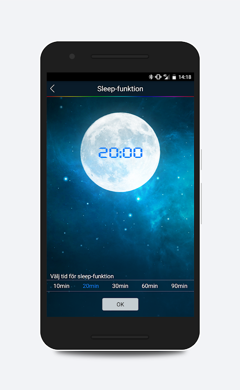 Med appen kan du komma åt ditt lokala musikbibliotek eller spela upp musik från valfri musik app. I appen kan man även ställa in att lampan ska stängas av eller sättas på automatiskt vid ett visst klockslag.