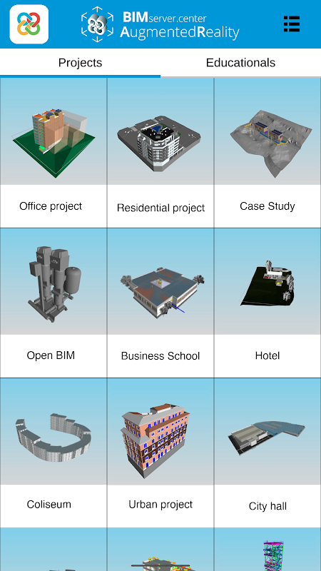 BIMserver.center AR allows you to browse through all the projects you are developing in BIMserver.center and view them in augmented reality.