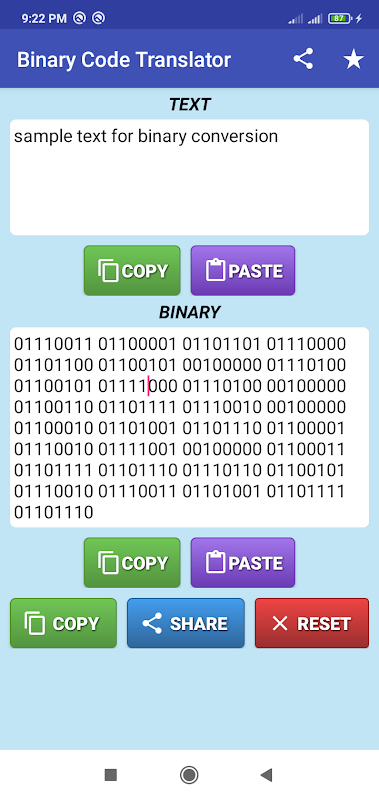 - Share Your Results: Easily share your binary code or text conversions with friends and colleagues, adding convenience to your communication.