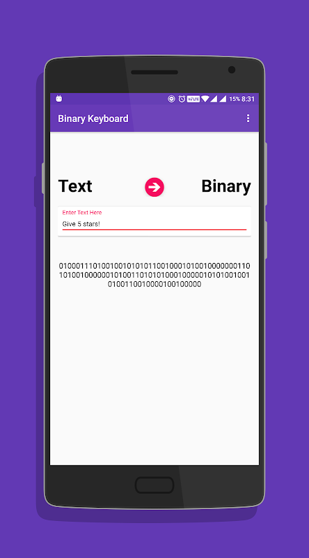 This application features a keyboard in which keys are A, B, C and so on but when you click on them, the Binary Letters corresponding to that letter will appear! So now no need to convert the text and then send it!
