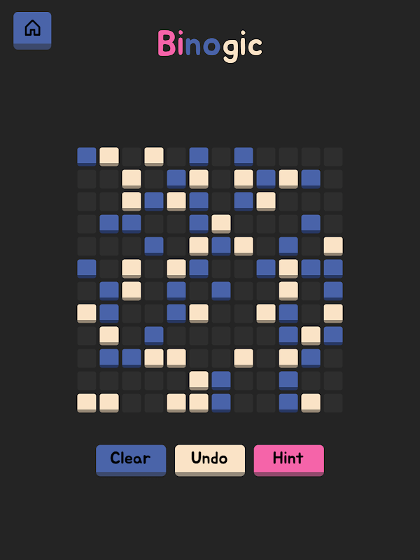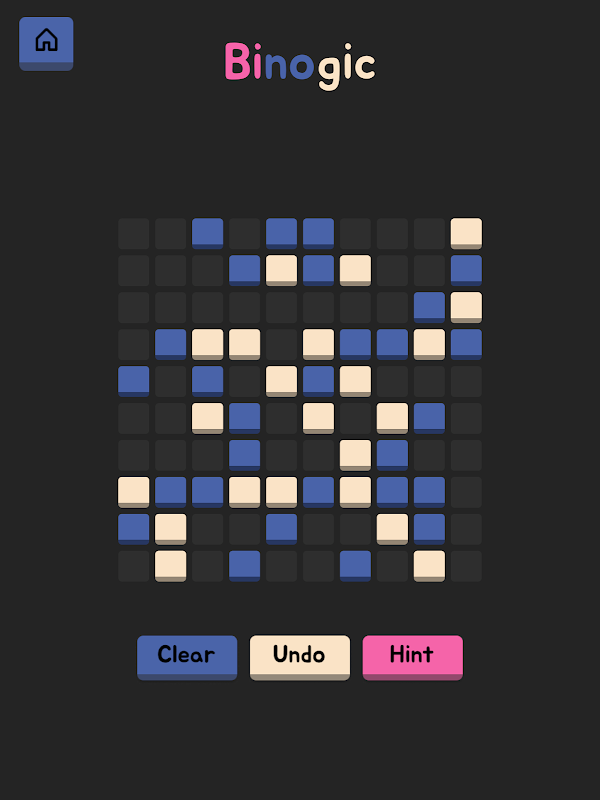 The goal of Binogic is simple: fill the grid with two colors (or zeros and ones) based on three fundamental rules. While the rules are easy to learn, mastering them requires a sharp mind!