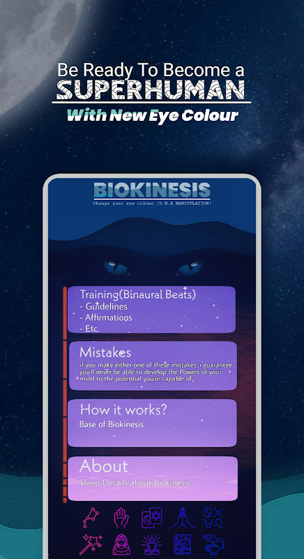We have done too much research and make high quality frequencies for you. which you will not find anywhere else. with these binaural beats ( brain waves ) you can change the color of your eyes , skin and hair within 3 months. this will Safely reprogram your D.N.A . in this application, we have given full package of every single detail which will help you a lot. These beats heal up your biokinesis ability & its effective on all eye colors Like:- blue eyes , green eyes , hazel eyes , red eyes , violet eyes , golden brown eyes & other.