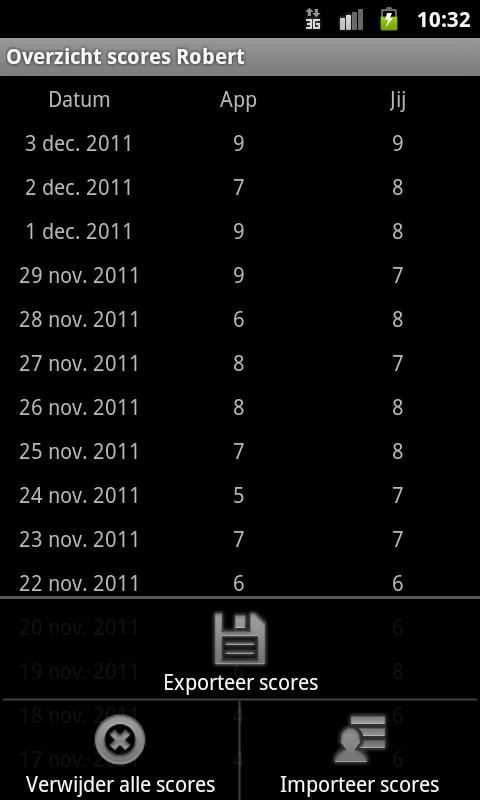 - Diary: record per day your rating with comments