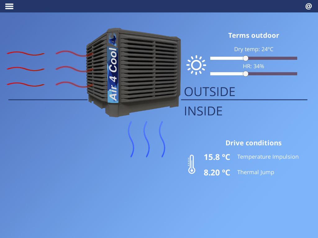 The Air4cool application allows us to perform simulations, as well as obtain real calculations for evaporative cooling projects. We can know all the possibilities of energy saving and the advantages that this type of systems provides.