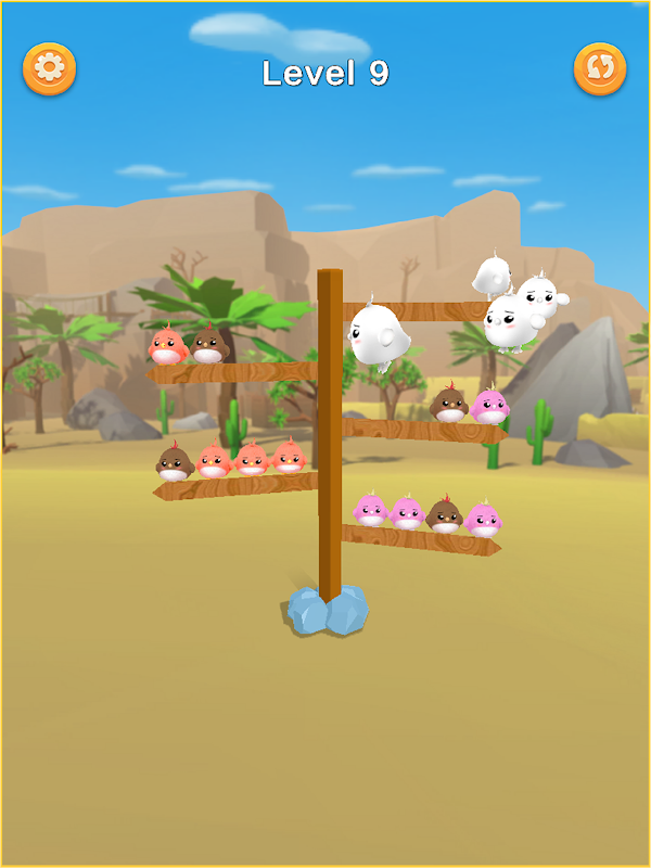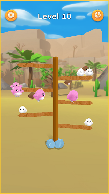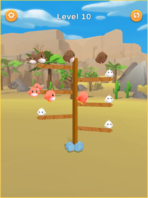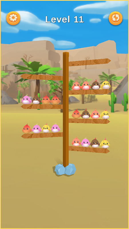 Arrange the stacky bird brain on any branch and make a set of any category of the color bird sort puzzle and enjoy the coins you earn. If you aren't able to sort the square birds in given branches you can add more branches as well.