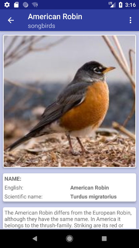 Clear app with more than 500 birds. Based on an extensive set of selection criteria, it is easy to determine which bird is observed.