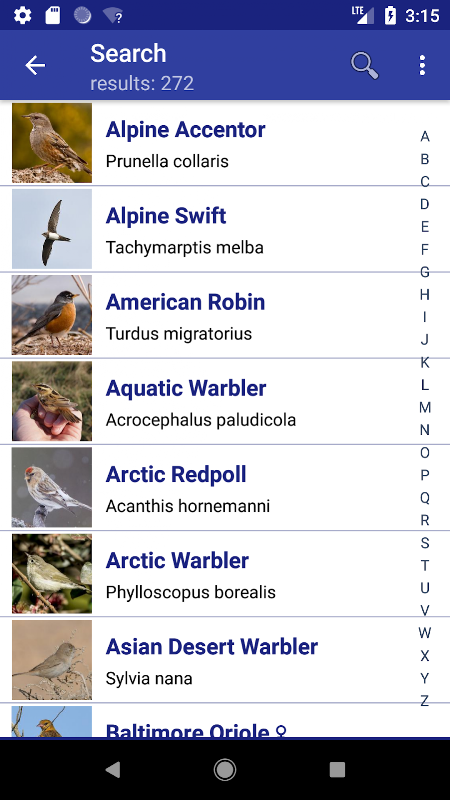 Identify more than 500+ birds using multiple search criteria. Extra: Quiz