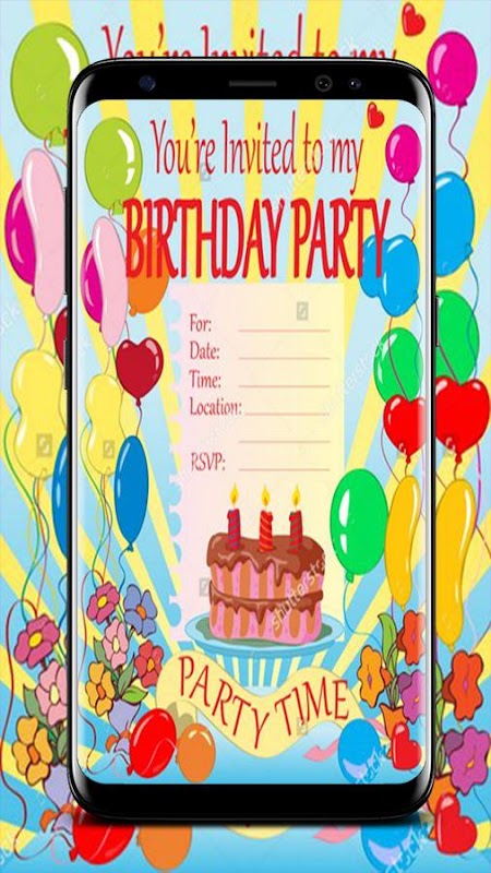 This app contains more than 100 designs of birthday invitation examples you can see and you make an example,