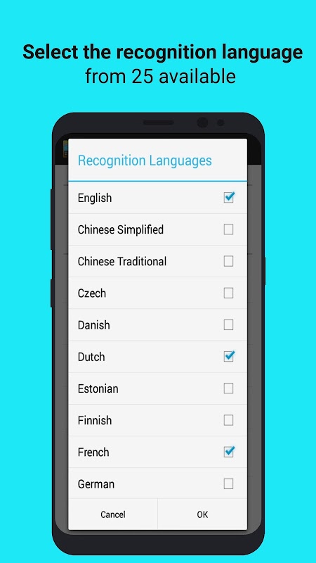 Supported recognition languages: