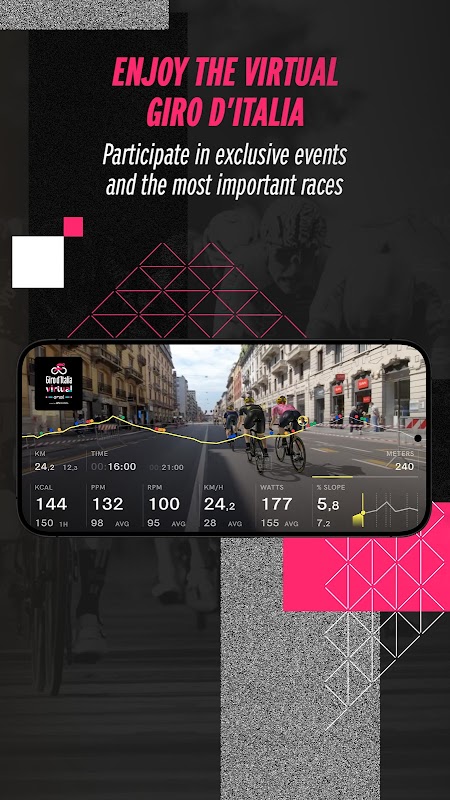 - Routes: Participate in real virtual races or train at your own pace with our wide selection of routes, including full editions of the Giro d'Italia to exotic landscapes around the world. Travel the world from your home and enhance your training experience with the best indoor cycling.