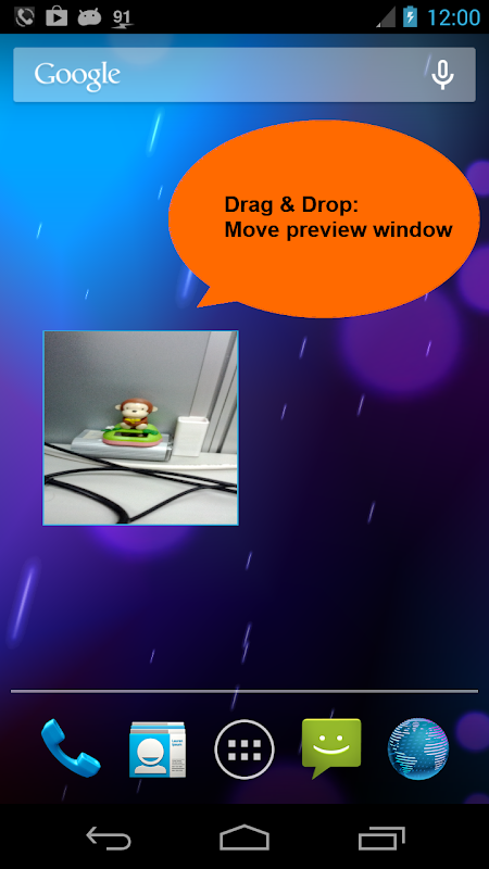 This software will generate a camera preview window that will remain at the top of the phone screen.