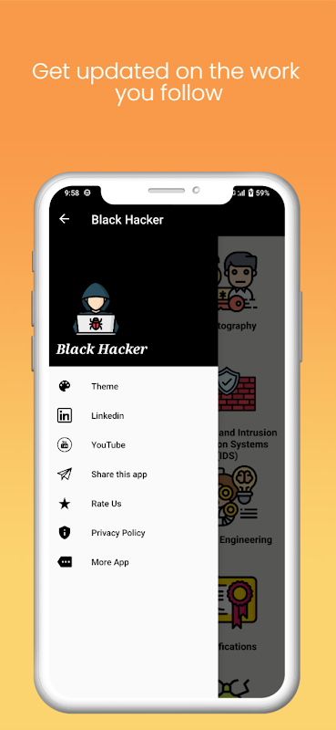 On this Black Hacker: To Learn Hacking app, you will be able to start the basic of cybersecurity and hacking so that you can build your hacking skills on the go from Hacking Tutorials on this app.