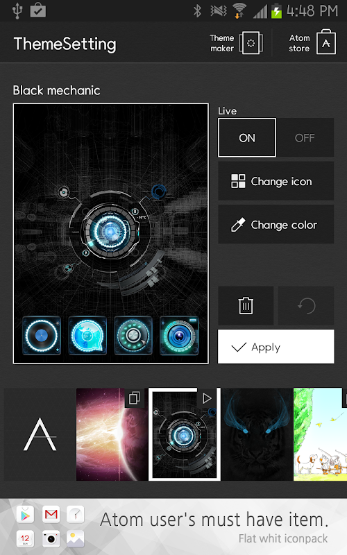1. Incorporating photos in the gallery with Atom icons (Menu – Wallpapers - Apply)