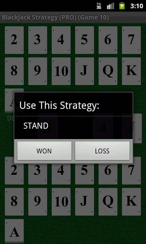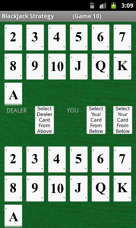 Great BlackJack helper application for beginners. Know instantly whether to HIT, STAND, DOUBLE DOWN, or SPLIT during a blackjack game. You'll select the dealer's facing card, and the cards in your hand. The application will quickly tell how you to play.