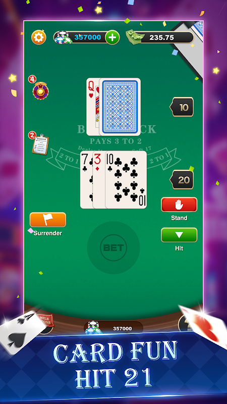 Step into the thrill of the casino floor with this timeless card game, inspired by classics like Twenty-One. Whether you're a seasoned strategist or a curious newcomer, this offline experience lets you play for fun—no real money, no pressure.