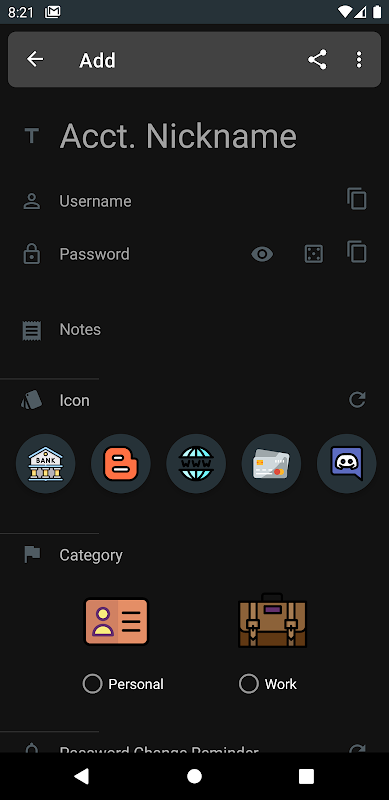 Tag accounts with nicknames, icons, and categories for easy referencing.