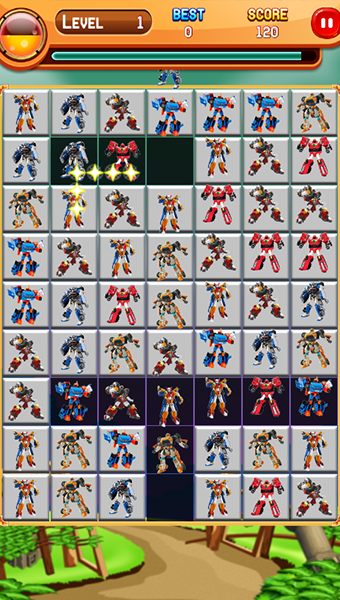 - Match 3 or more tobot in a line to crush them.