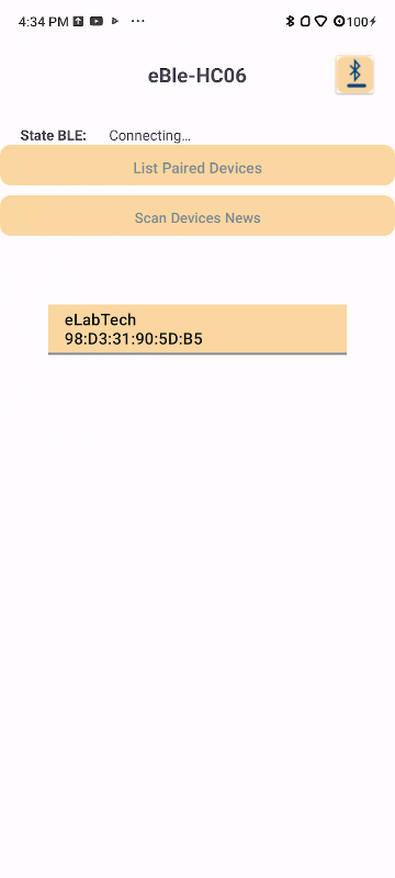 eBLE_HC06 is developed by the ElabTech team, the application allows communication of bluetooth modules HC05 ,HC06,... connecting with smartphones easily