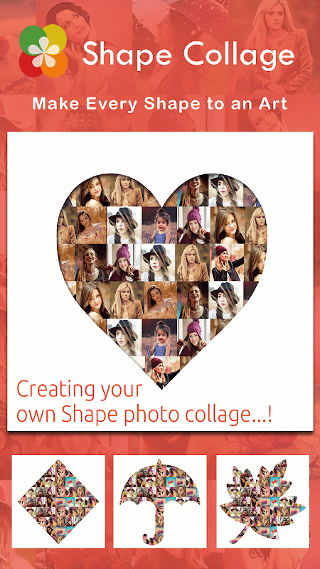 2- The Shape Collage Maker: - With our shape collage you can mix photos by adding numerous photos in a predefined shape in just few seconds. You can choose different and stylish shapes for your photos shape collage. Your images are automatically and intelligently packed inside the shapes. From this app you can choose from various categories and shapes like Heart, butterflies, apple, cat, flower etc for enhance your collage work. You'll be amazed by the quality of the output image, just give it a try.