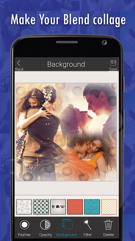 1- The Blend Collage Maker : - Blend Collage is a new app for making unusual Montage, blending photos together in a harmonious way. Just put up to 8 pictures on the canvas to create an eye-catching Snap story. Photo blend allows you to blend multiple Snap together to create a collage effect! You just need to pick pictures or take selfie. Blend photo collage maker is an amazing and new feature which allows you to making unusual collage instantly with blending photos together. Blend photo collage maker is a powerful photo editing tool that lets you Create unique collage with blending effect. You can create eye catching photo story of your friends outing,Wedding, family get together, Graduation, Collages, Birthday celebrations, Romantic dates, Parties or any special occasion like marriage , anniversary etc. Get creative & have a lot of fun with Blend Collage!