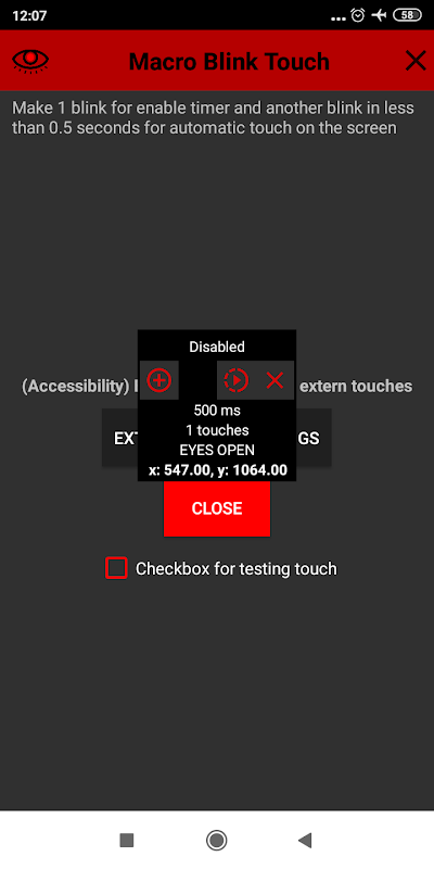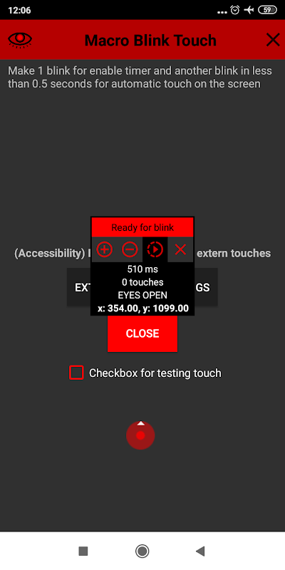 - This app simulates touches on the coordinates (x, y) where you put the target on the screen.