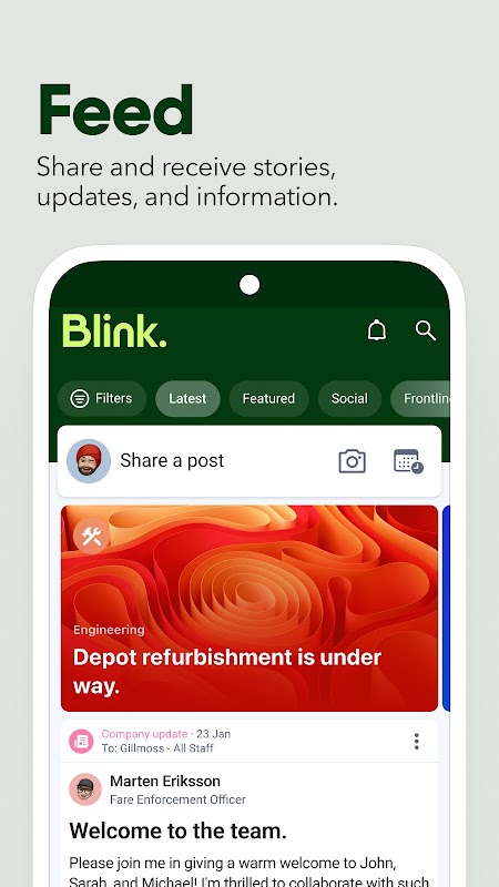 Blink is the no. 1. employee app. Our mission is to improve the lives of employees through technology by giving them a voice. Blink is more than an internal communications app or an intranet app; customize the platform to match your brand colors, access timetables and rotas, view your e-payslips, swap shifts and book holidays all with a few clicks! Use our award-winning, all-in-one employee engagement software to digitize paper-based processes and make your data more secure and compliant.