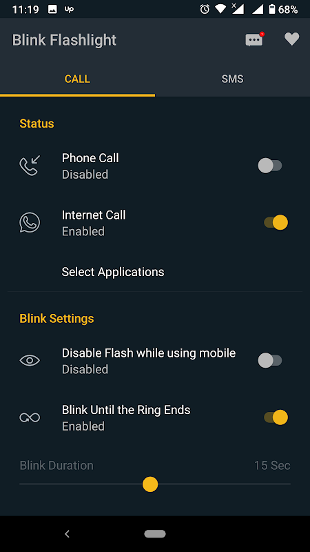 • With this app, you can customize the settings as you like, Set flashlight alert modes for apps, for example, different blink styles for WhatsApp messages and different for Facebook Messenger.