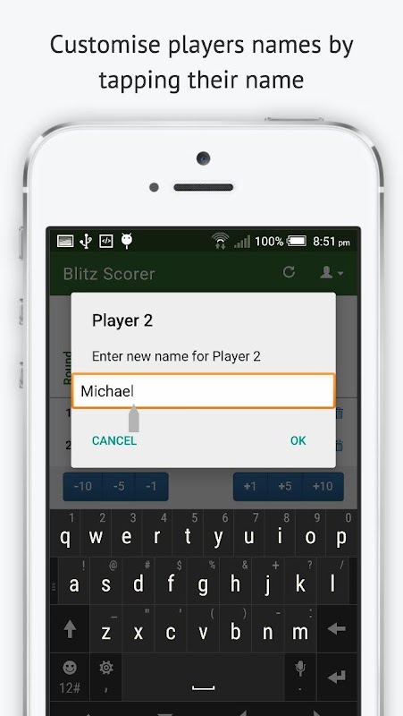 - Change a players name by tapping the name.
