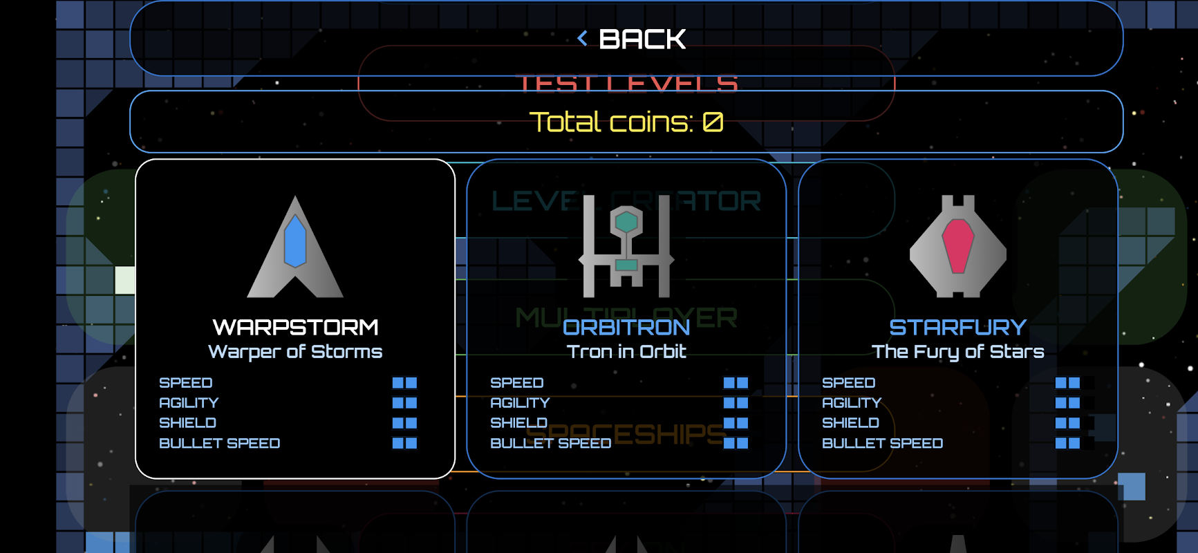 - a level creator for creating/designing/editing your own space missions