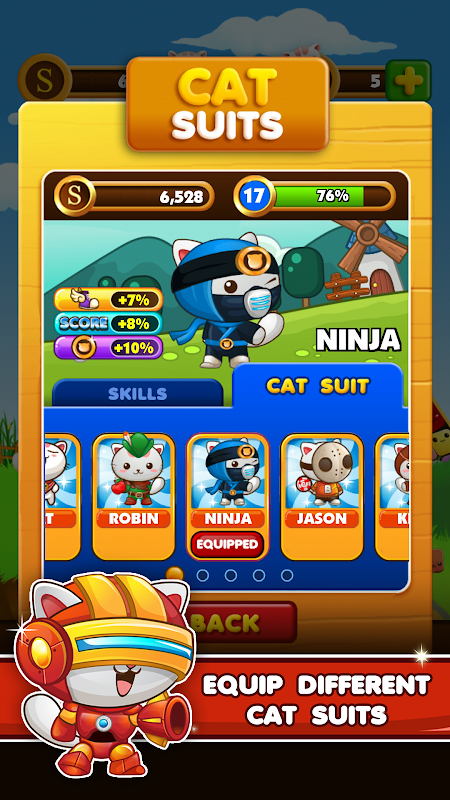 Use different cat costumes to create unique character and boost your abilities! Meaow!